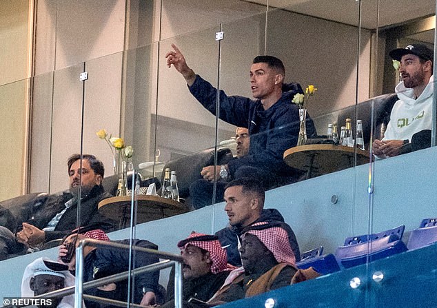 Ronaldo berulang kali mengejek dengan mengulurkan tangannya ke depan di dekat panggulnya, dalam sebuah isyarat yang ditujukan kepada para penggemar Al-Shabab.