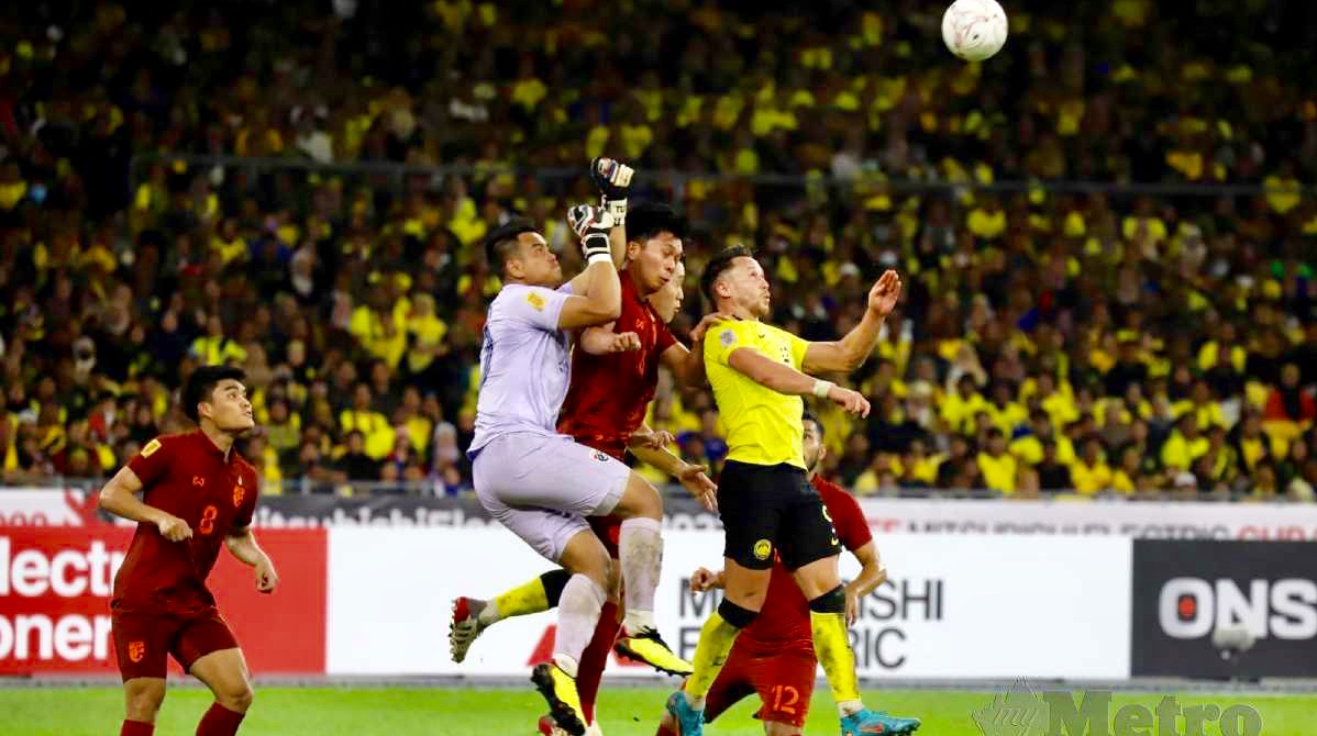 Dan, bola mengenai kepala pemain nomor 6 Malaysia. Segingga sepatutnya Malaysia menang 2-0.