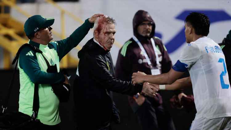 Pelatih Meksiko Javier Aguirre berdarah-darah dilempar kaleng minum. Foto: via ESPN