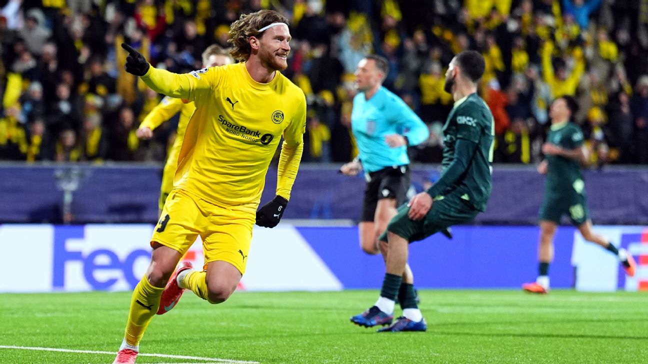 Pemain Glimt merayakan golnya saat mengalahkan City. Foto: via ESPN