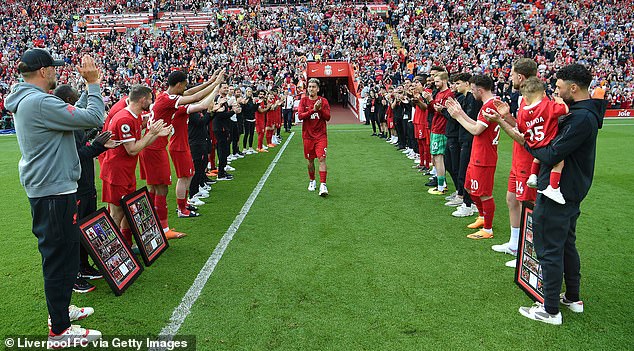 Naby Keita dan Alex Oxlade-Chamberlain, yang tidak masuk dalam skuad hari pertandingan, juga akan pergi pada akhir musim, dan mereka juga merayakannya setelah pertandingan. Keempat pemain diberi cinderamata dengan gambar berbingkai di lapangan Anfield.