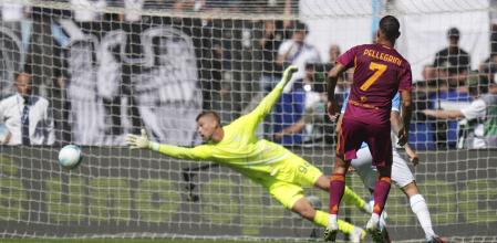 Tekanan Roma akhirnya membuahkan hasil di menit ke-38. Pemain muda Matías Soulé mencuri bola dari kaki Tavares dan langsung mengirimkan operan kepada Pellegrini.