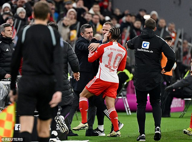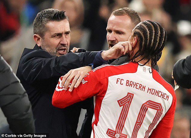 Sane dan Bjelica saling berhadapan di sisi lapangan saat pemain sayap Bayern itu berusaha mengambil bola untuk lemparan ke dalam. Tapi tiba-tiba manajer asal Kroasia itu menarik bola dan bola menjauh dari Sane.