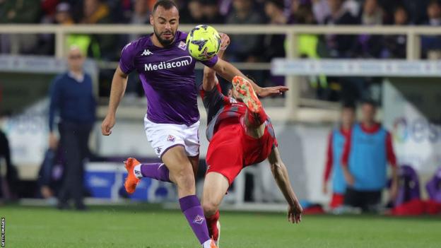 Riccardo Sottil nyaris mencetak gol kemenangan untuk Fiorentina, tetapi tidak mampu memanfaatkan sepak pojok di tiang jauh.